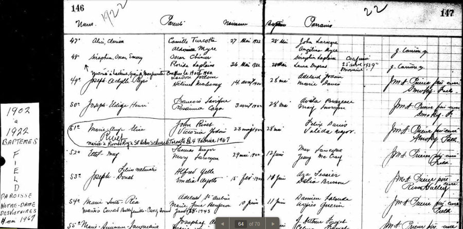 Baptism of Séraphin Oscar Emery Chénier