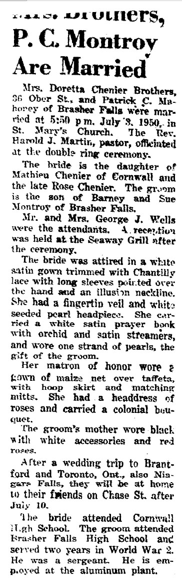 Marriage record for Doretta Chenier Brothers and Patrick Mahoney
