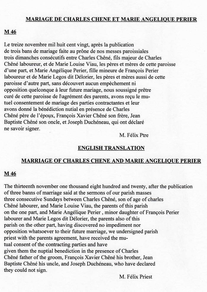 Charles Chêné & Marie Angélique Perier Transcriptions