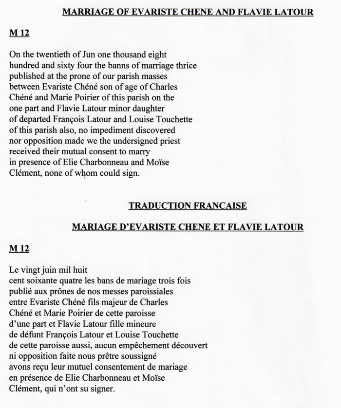 Evariste Chéné & Flavie Latour Transcription of/de Marriage/Mariage