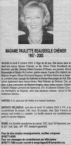 Chénier, Paulette (Née Beauseigle) (1957-2003)