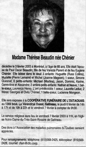 Beaudin, Thérèse (Née Chénier) (1918-2003)