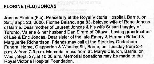 Joncas, Florine (Flo) (Née Béland) (1917-2000)