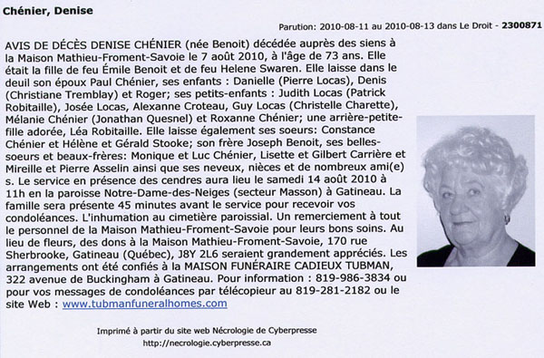 Chénier, Denise (Née Benoit) (1937-2010)