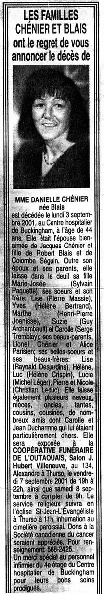 Chénier, Danielle (Née Blais) (1957-2001)