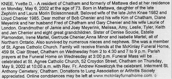 Knee, Yvette (Née Boissonneault) (1929-2002)