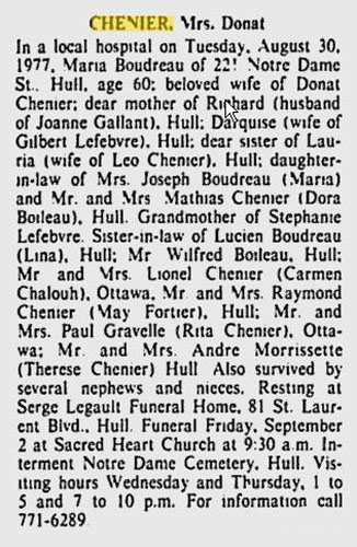 Boudreau, Maria (Née Chénier) (1917-1977)