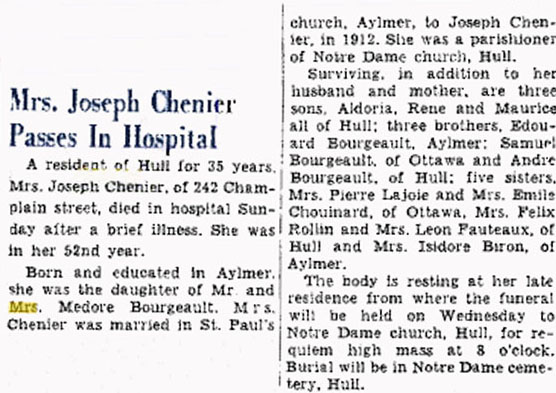 Chénier, Blanche (Née Bourgeault) (1896-1948)