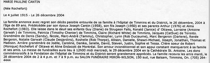 Cantin, Marie Pauline (Née Rochefort) (1915-2004)