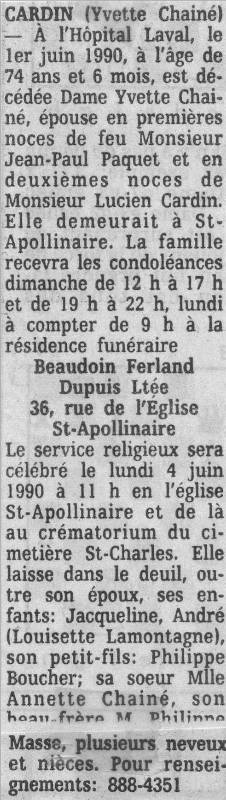 Cardin, Yvette (Née Chainé) (1926-1990)