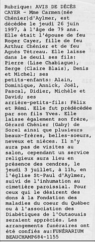 Cayer, Carmen (Née Chénier) (1917-1997)