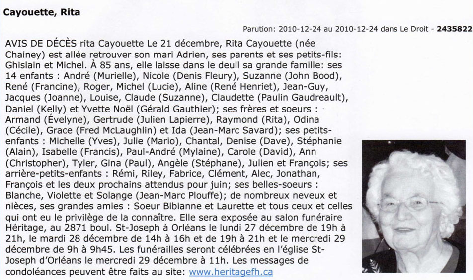 Cayouette, Rita (Née Chainey) (1925-2010)