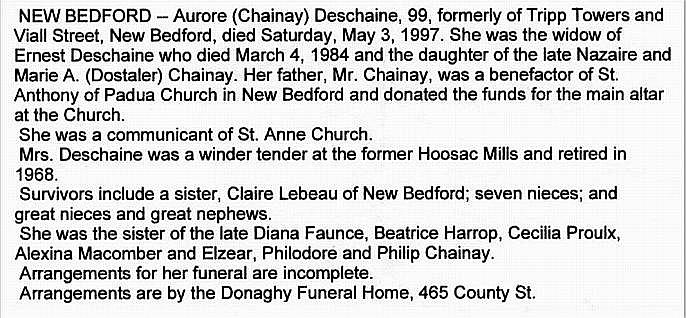 Deschaine, Aurore (Née Chainay) (1898-1997)