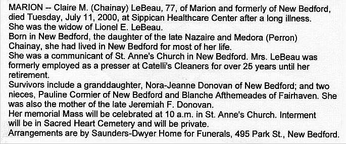 LeBeau, Claire M. (Née Chainay) (1923-2000)