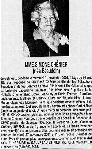 Chénier, Simone (Née Beaudoin) (1917-2001)