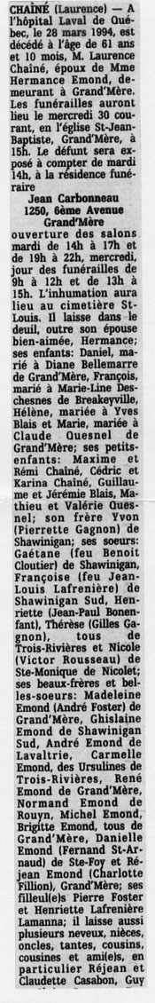 THE DESCENDANTS OF BERTRAND CHESNAY dit LAGARENNE