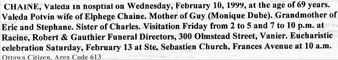 Chainé, Valéda (Née Potvin) (1930-1999)