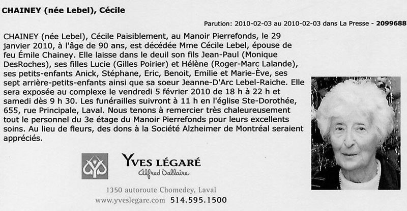 Chainey Cécile (Née Lebel) (1919-2010)
