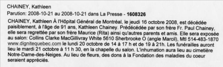 Kathleen (Catherine) Thérèse Marie CHAINEY