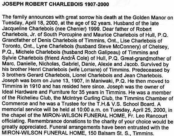 Joseph Robert (Bob) CHARLEBOIS