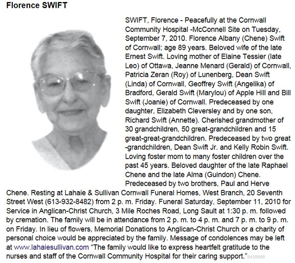 Swift, Florence, Albanie (Albany) Marie (Née Chéné) (1921-2010)