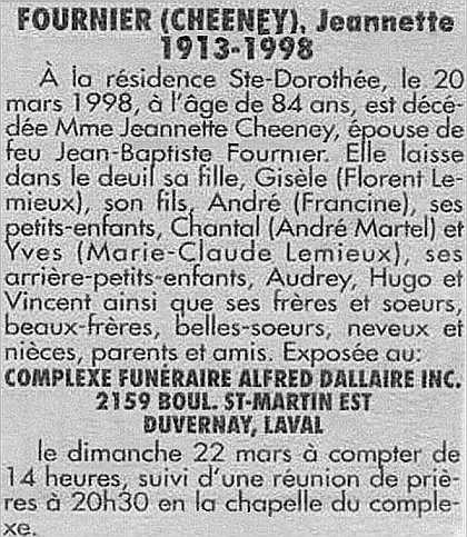 Fournier, Jeannette (Née Cheeney) (1913-1998)