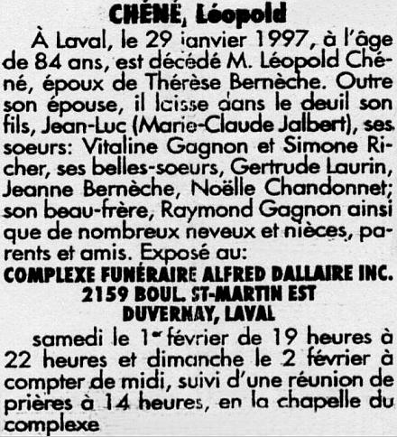 THE DESCENDANTS OF BERTRAND CHESNAY dit LAGARENNE