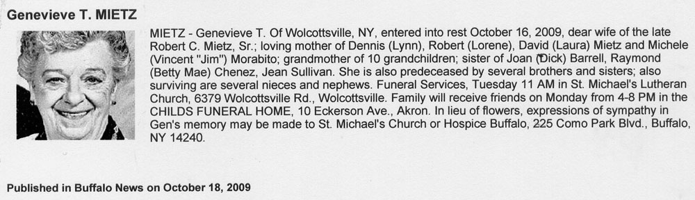 Mietz, Genevieve T (Née Chenez) (1928-2009)