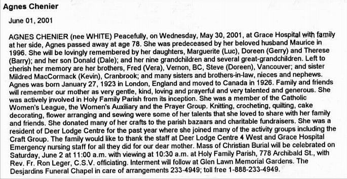Chenier, Agnes (Née White) (1923-2001)