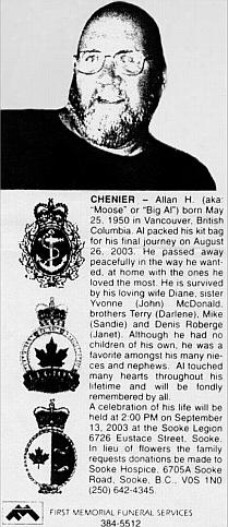 Chenier, Allan H (aka Moose or "Big Al") (1950-2003)