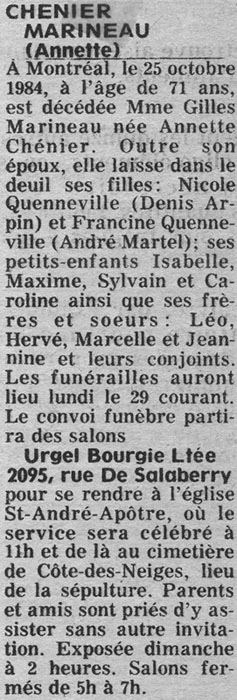 Marineau, Annette (Née Chénier) (1917-1984)