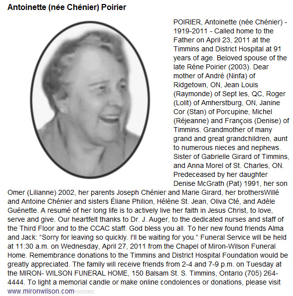 Poirier, Antoinette (Née Chénier) (1919-2011)