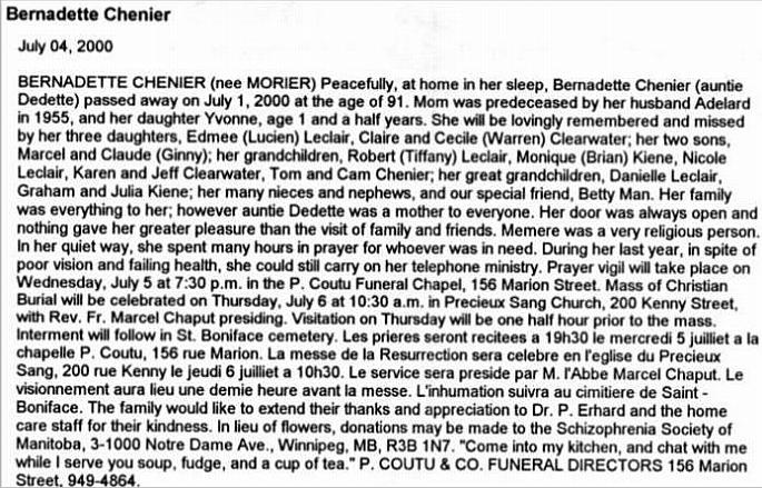 Chénier, Bernadette (Née Morier) (1909-2000)