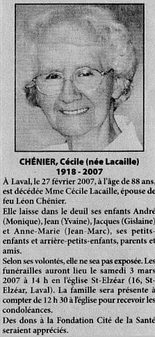 Chénier, Cécile (Née Lacaille) (1918-2007)