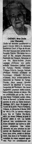 Chénier, Cécile (Née Villemaire) (1909-2003)