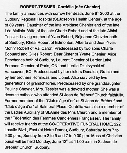 Robert-Tessier, Cordélia (Née Chénier) (1911-2000)