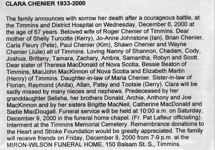 Chénier, Clara (Née McKinnon) (1933-2000)