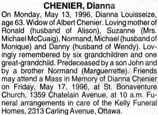 Chénier, Dianna (Née Louisseize) (1933-1996)