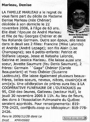 Marleau, Denise (Née Chénier) (1943-2006)