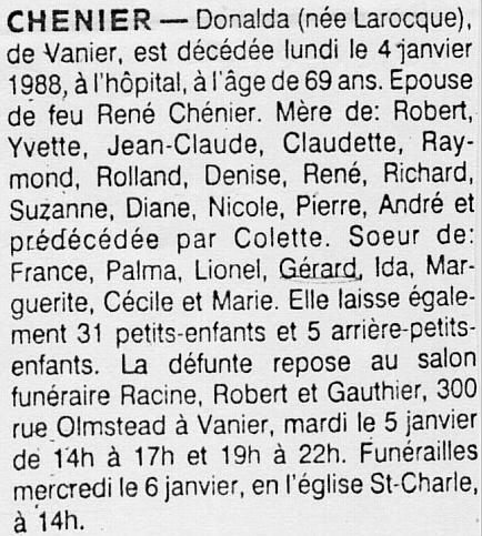 Chénier, Donalda (Née Larocque) (1918-1988)