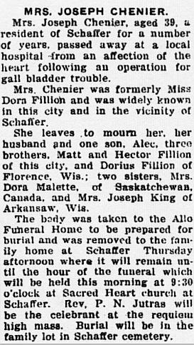 Chenier, Dora (Née Fillion) (1885-1924)