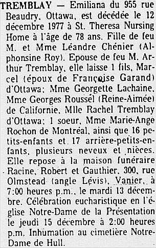 Tremblay, Emiliana (Née Chénier) (1899-1977)