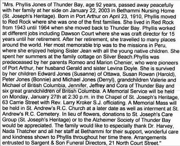 Jones, Phyllis (Née Chénier) (1910-2003)