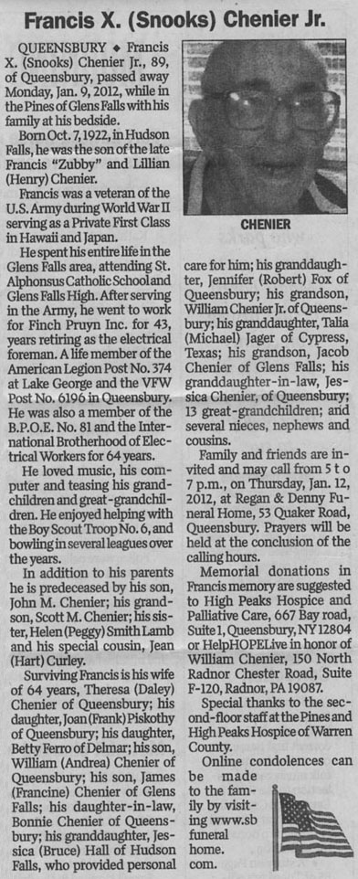 Francis Xavier (Snooks) Chenier (1922-2012)