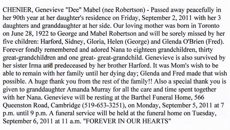 Chenier, Genevieve "Dee" Mabel (Née Robertson) (1922-2011)
