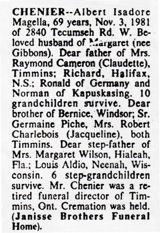 Magella Albert Isidore (Gérard) (Jerry) CHENIER