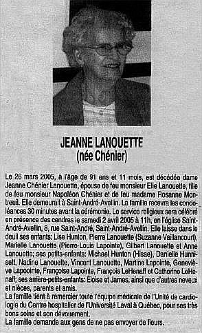 Lanouette, Jeanne (Née Chénier) (1913-2005)
