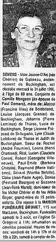 Demers, Jeanne D'Arc (Née Chénier) (1927-1996)