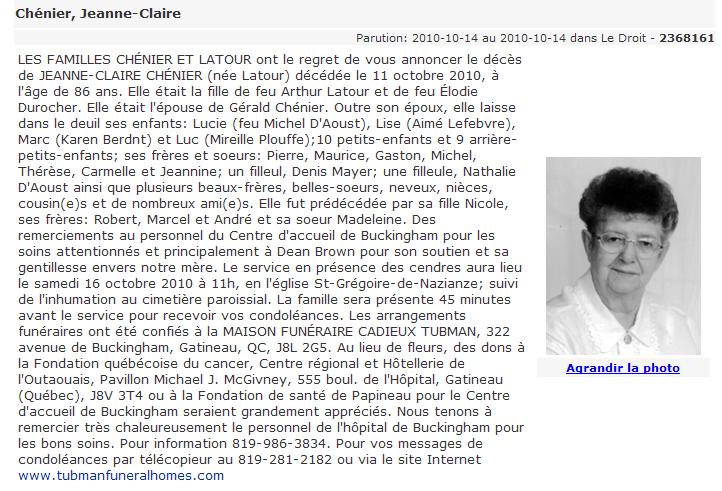 Chénier, Jeanne-claire (Née Latour) (1924-2010)