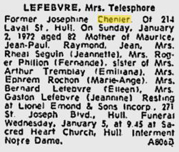 Lefebvre, Joséphine (Née Chénier) (1889-1972)